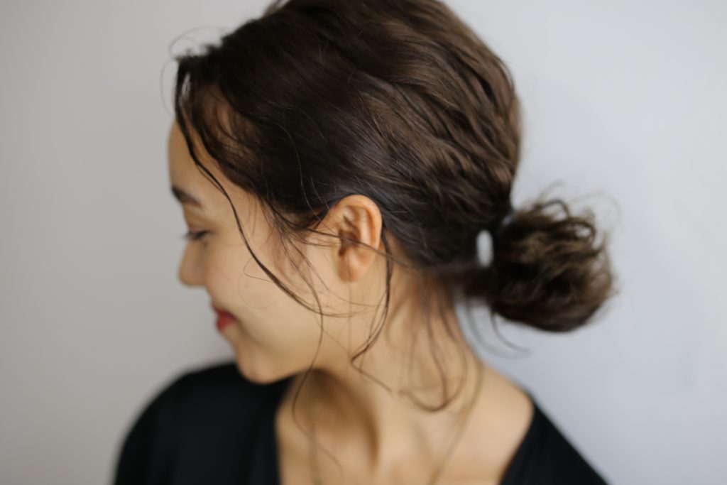 ざっくりひとつに結ぶだけでもオシャレに。